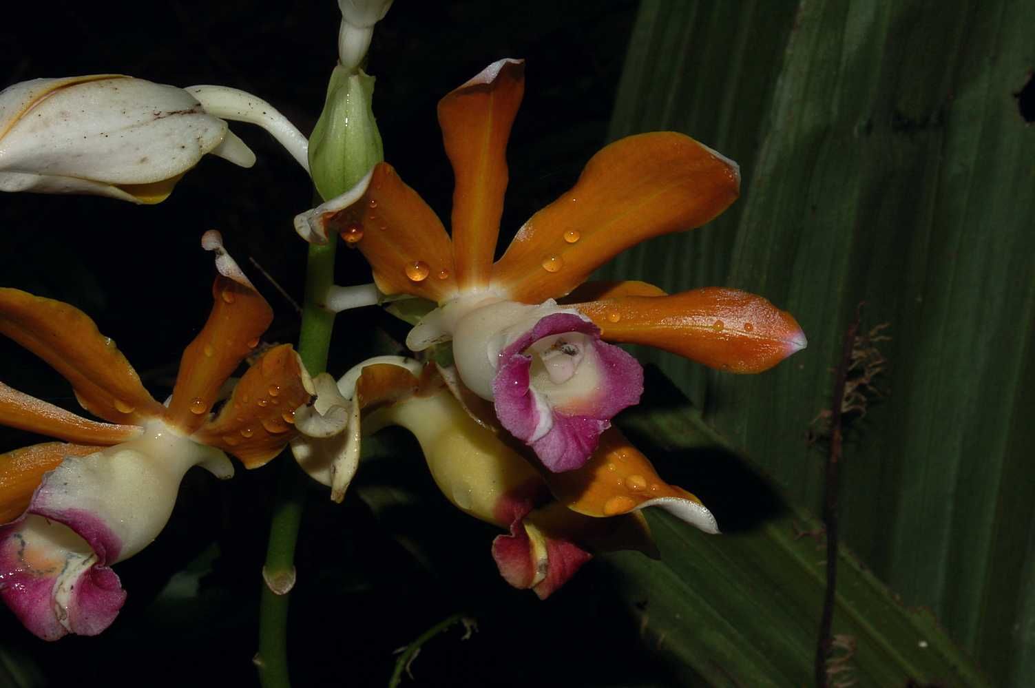 Found in penninsular Malaysia, Borneo, Java, Sumatra & Sulawesi in montane forests on mossy boulders and leaf litter at elevations around 1000 to 1800 meters as a medium sized, cool growing terrestrial with pseudobulbs enveloped completely by imbricate leaf-bearing sheaths and carrying plicate, acute, gradually narrowing below into the petiolate base leaves that blooms in the spring on a basal, to 4' [120 cm] long, 10 to 20 flowered inflorescence with oblong, obtuse, concave floral bracts that fall off as soon as the fragrant, long-lasting flowers open.