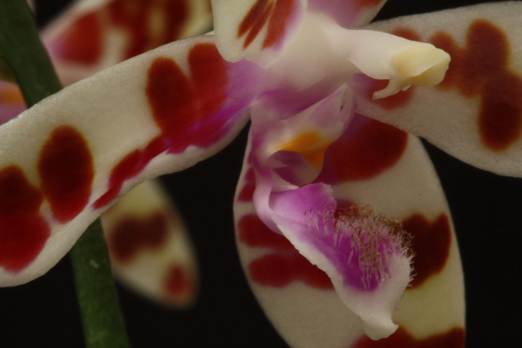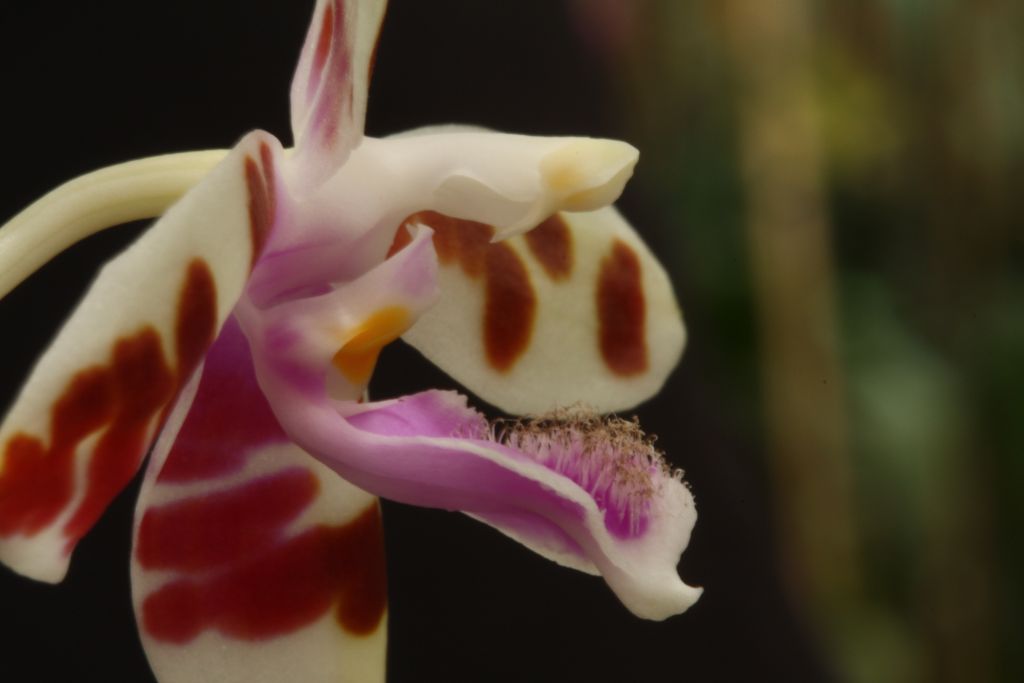 A small sized, warm to hot growing epiphytic species that comes from the Philippines and Borneo at elevations around 600 meters on tree trunks and branches in dense shade with short stems enveloped by imbricating leaf bases and carrying distichous, oblong-ligulate to obovate-ligulate, fleshy, deflexed, acute or obtuse leaves and blooms in the summer on a lateral, pendulous, to 14 to 24" [35 to 60 cm] long, racemose or paniculate, few to many flowered inflorescence with small, distichous, triangular-ovate bracts and simultaneously opening, slightly to strongly fragrant flowers.