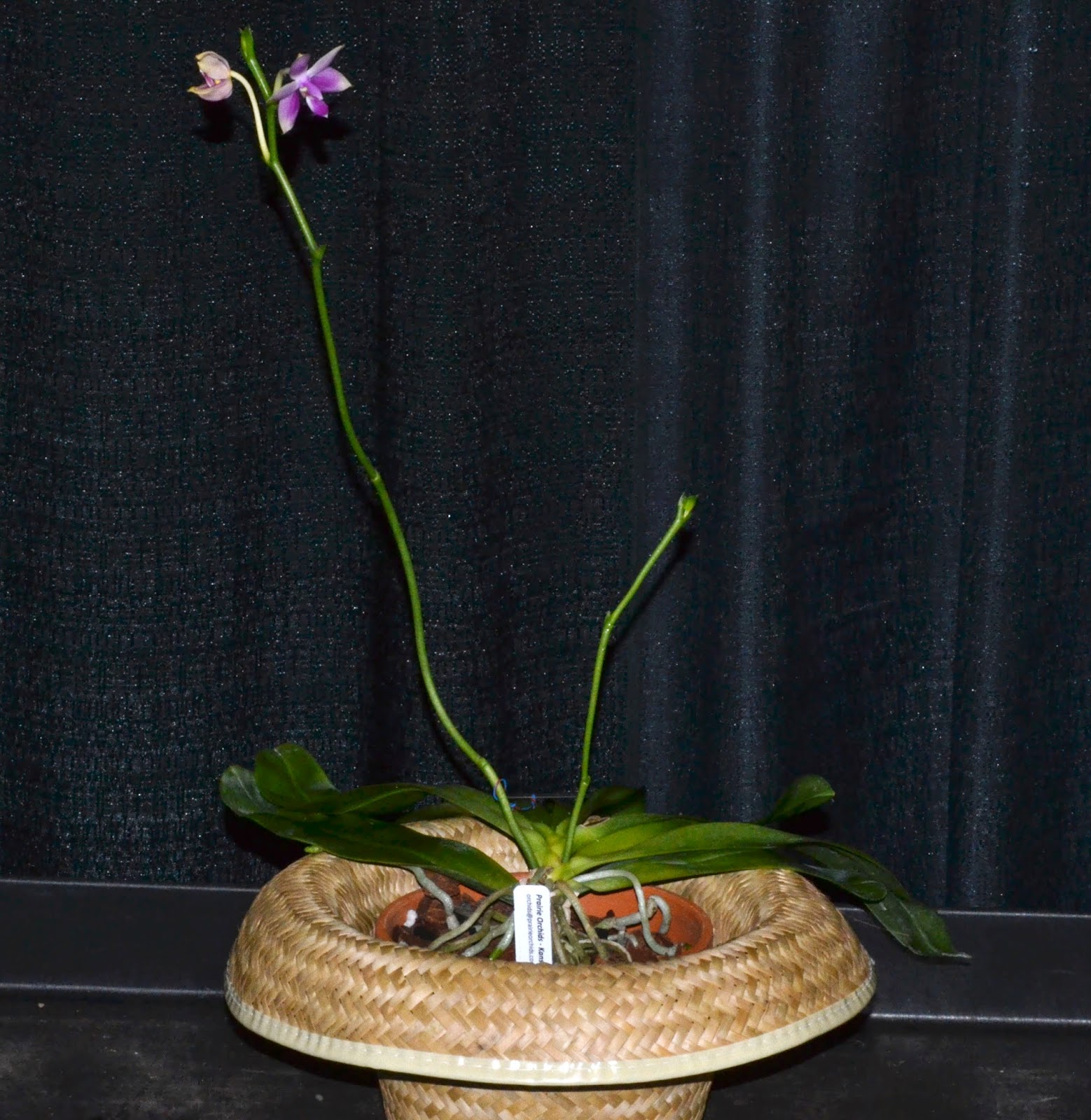"The species is similar to both P violacea and P bellina but P mentawaiewnsis has a long, rounded rachis up to 20" [50 cm] long, that can reach longer than the tongue shaped, often curled leaves. The speceis has thin roots as well as significantly larger, brilliantly colored flowers." W Higgins 2019