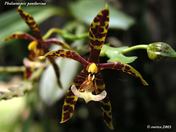 Common Name The Panther-Like Phalaenopsis [refers to the spots on the flower] - In Borneo "The Crocodile Tail Orchid"