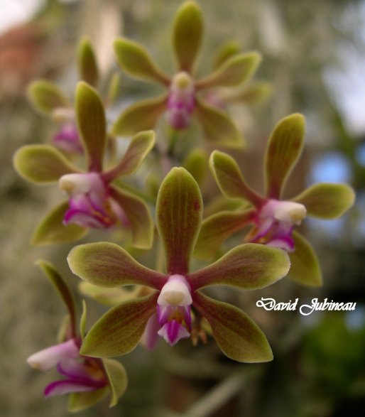 Found in Yunnan China in dense forests on tree trunks overhanging watercourses at elevations of 800 to 900 meters as a miniature sized, warm growing epiphyte with a large root system carrying deciduous at flowering, oblong-lanceolate, acute leaves that blooms in the later spring and early summer on a arching to pendant, to 8" [20 cm] long, racemose inflorescence that carries ovate, concave, acuminate floral bracts and 7 to 9, strongly fragrant flowers.
