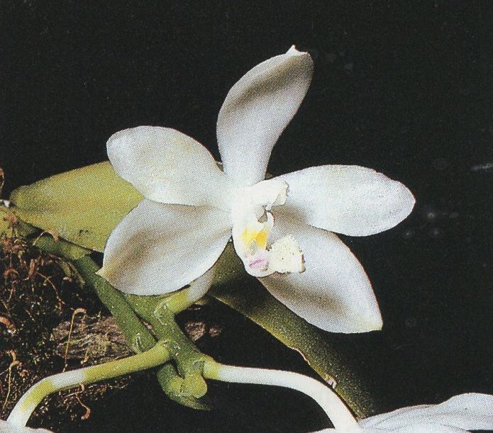 This orchid ia a hot growing epiphyte that likes high humidity and regular waterings year round.