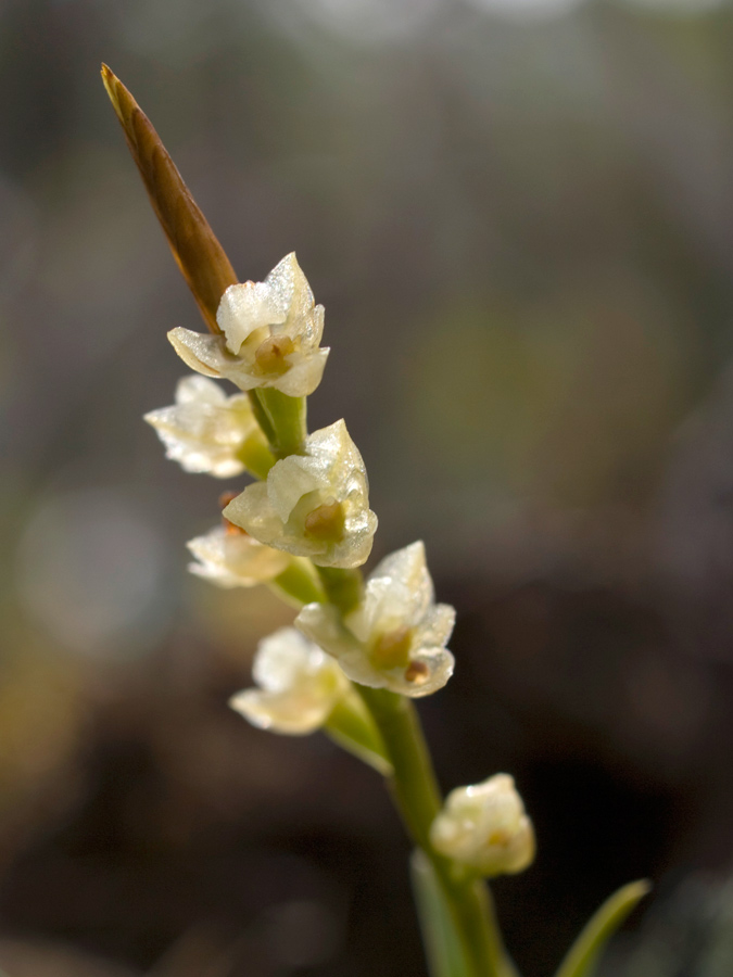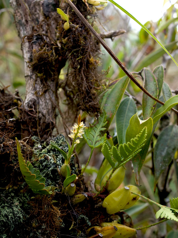 Found in the Chinese Himalayas, Assam, eastern Himalayas, Myanmar, Thailand, Java, Sumatra and Vietnam at elevations around 1370 meters as a small sized, cool growing terrestrial with a thick, woody rhizome giving rise to long-conical, curved, yellowish green pseduobulbs and carrying 2, lanceolate, tough, acute, gradually narrowing below into the petiolate base leaves that blooms in the fall on a 8" [20 cm] long, to 20 flowered inflorescence arising from newly arising growths and has narrowly lanceolate, acute, longer than the flowers floral bracts and carrying fragrant flowers.
