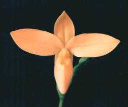 Found on the eastern slopes of the Andes of Colombia, Ecuador and Peru as a small sized, cool growing, lithophyte or terrestrial with no psuedobulbs on cliff-faces of riversides, on granite rocks, in wet montane forests at 1000 to 1500 meters with 6 to 10, linear to narrowly elliptic, coriaceous, dark green leaves held in a broad, fan shape that blooms in the late winter and spring on a terminal, erect, 12 to 16" [30 to 40 cm]long, 1 to 4, succesive flowered, pubescent, racemose inflorescence that is shorter than the leaves with elliptic, boat-shaped bracts.