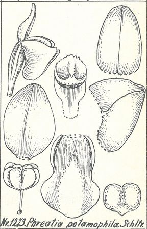 References W3 Tropicos, Kew Monocot list , IPNI ; Orchidaceae of German New Guinea Schlechter 1913 as P potamophila drawing fide; Orchids of Papua New Guinea Millar 1999 as P rivularis;