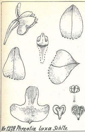 References W3 Tropicos, Kew Monocot list , IPNI ; Orchidaceae of German New Guinea Schlechter 1913/85 drawing fide; Orchidaceae of German New Guinea Schlechter 1913/85 as Phreatia laxa var. perlaxa; Flora Malesia Orchids of New Guinea Vol V Shuiteman and de Vogel 2008