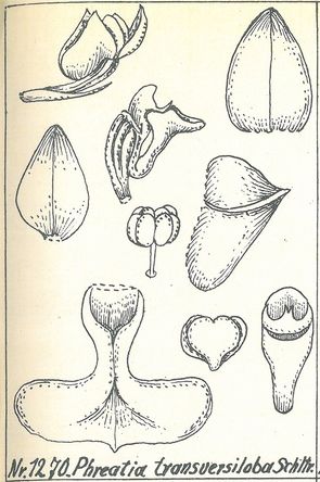 Phreatia transversiloba Schltr. 1913 SECTION Bulbophreatia TYPE Drawing by Schlechter and The Swiss Orchid Foundation at the Jany Renz Herbaria Website