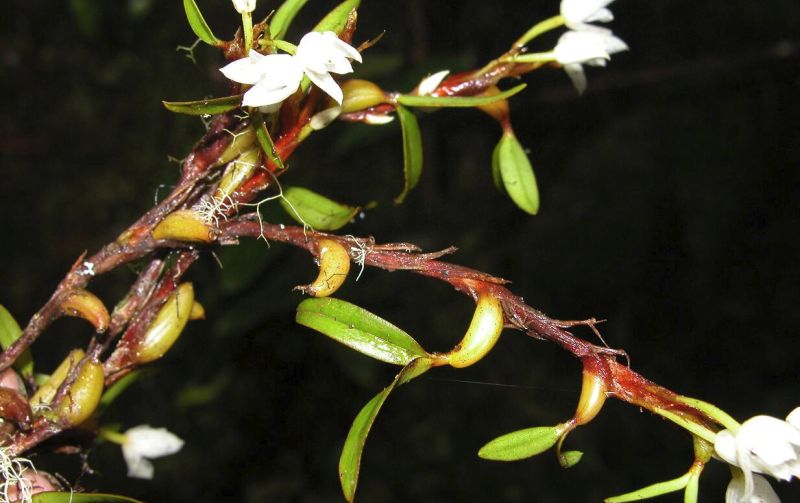 Found in Cusco Peru at elevations around 2215 meters as a mini-miniature sized, cold growing epiphyte with oblong, curving towards the apex, yellow-brown pseudobulbs carrying 2, apical, elliptic to elliptic-oblong, obtuse leaves that blooms in the fall on an axillary, short, single flowered inflorescence.