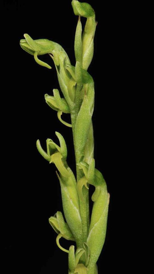 Found in the eastern Himalayas, Bhutan and Nepal in rhododendron forests at elevations of 2000 to 3050 meters as a small sized, cold growing terrestrial with a cylindric-ovoid, sparsely pubescent tuber giving rise to a slender stem enveloped by basal, overlapping, lanceolate sheaths and lanceolate, acute to acuminate stem bracts and carrying 4 to 5, distant, lanceolate, acute, clasping, strongly veined leaves that blooms in the summer on an erect, terminal, rachis 1.8" to 2.8" [4.5 to 7 cm] long, laxly 5 to 8 flowered inflorescence with linear-lanceolate, acuminate floral bracts.