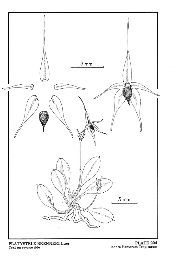 References W3 Tropicos, Kew Monocot list , IPNI ; Orchids of Venezuela, An Illustrated Field Guide Vol 3 Dunsterville & Garay 1979 drawing fide; Icones Planetarum Tropicarum Plate 204 Dodson 1980 drawing good; Icones Pleurothallidinarum Vol VII Systematics of Platystele Luer 1990 drawing fide; Native Ecuadorian Orchids Vol 4 Dodson 2003 drawing fide; Orquideas de la Serrania del Baudo Misas Urreta 2006 drawing/photo fide;