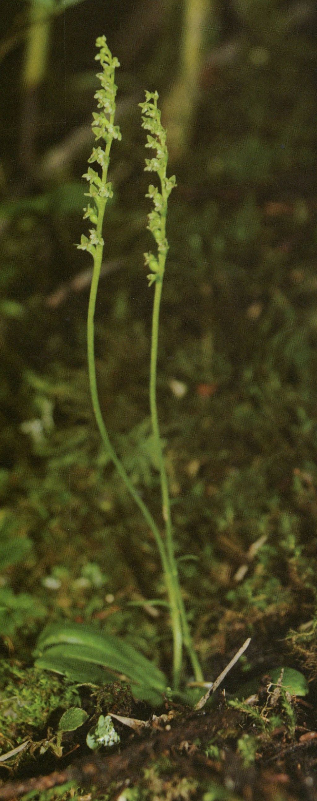 Found in eastern Nepal and northwaetern Yunnan province of China in bamboo forests at elevations around 3200 meters sa a miniature to small sized, cold growing terrestrial with a slender, erect stem carrying bract-like leaflets and 2 leaves in the lower half and 2 to 3, oval leaves above that blooms in the later summer on an erect, .6 to 1.4" [ 1.5 to 3.5 cm] long, densely many flowered inflorescence with ovate, shorter than the ovary floral bracts.