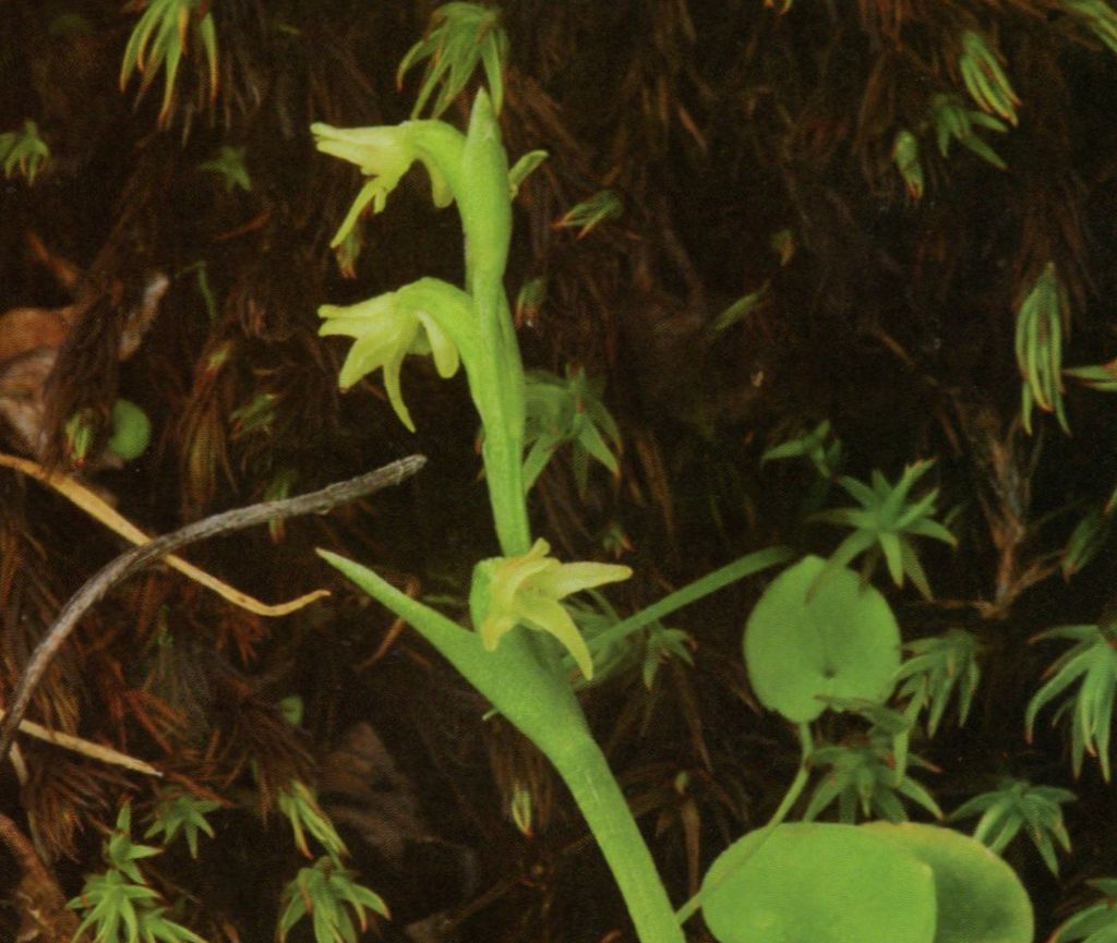 Found in northwestern Yunnan province of China and Sikkim in bamboo forests on slopes at elevations of 3600 to 3800 meters as a small sized, cold growing terrestrial with a narrowly ellipsoid tuber giving rise to an erect stem carrying 1 to 2, basal, oblong, acutebasal one larger, upper one bract like, leaves that blooms in the later summer on an erect, peduncle slender, to 4' [10 cm] long, provided with a small bract, rachis to 2.4" [6 cm] long, 8 to 9 flowered inflorescence with lanceolate longer than the ovary floral bracts.
