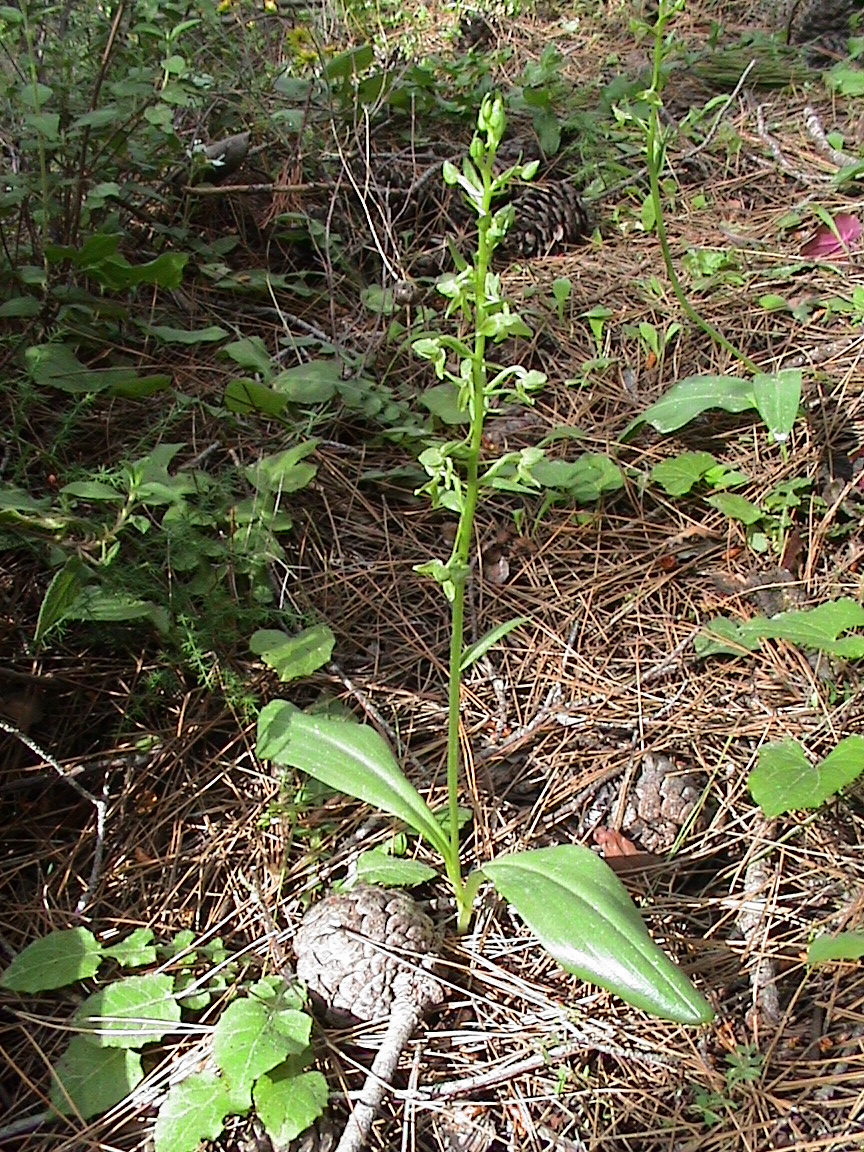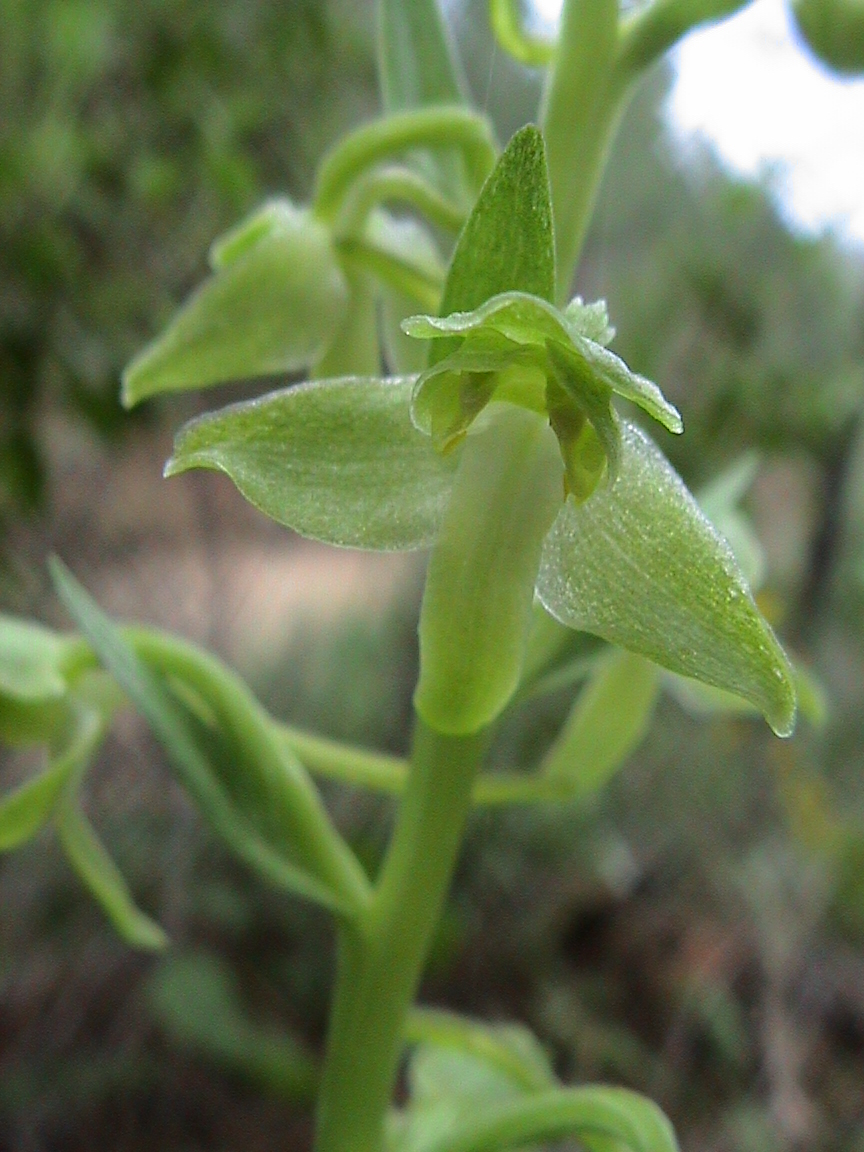 Found in the eastern Aegaen Islands, Cyprus, Turkey, Syria Lebanon, Israel and Jordan in scrub and pinewoods in shade at elevations up to 2000 meters as a small to medium sized, warm to cold growing terrestrial with 1 to 4 basal leaves that blooms in the spring on an erect, 6 to 16" [15 t o40 cm] long, to 25 flowered inflorescence