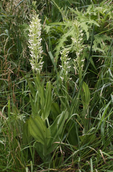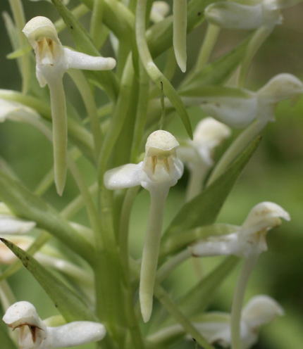 Found in China, Korea, Japan and the Ryukyu Islands in forests on grassy slopes nad along hillsides at elevations of 800 to 2500 meters as a medium sied, warm to cold growing terrestrial with an erect, glabrous stem carrying 3 to 6, elliptic to oblong, herbaceous, amplexcaul and basally clasping leaves that blooms in the spring on a terminal, racemose, 10 to 20 flowered inflorescence with narrowly lanceolate bracts that are much longer than the very fragrant flowers