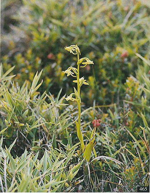 Found in north central and central Taiwan in alpine coniferous forests and bamboo thickets at elevations of 2400 to 3000 meters as a small sized, cold growing terrestrial with stoliniform tubers giving rise to a suberect, ridged, pale green stem carrying 2 larger basal, oblong to oblong-lanceolate, narrwoing below into an indistinct petiolate base leaves, 2 to 3 smaller, bract-like leaves above that blooms in the summer on a terminal, straight, erect to suberect, green, 3.2 to 8" [8 to 20 cm] long, racemose, laxly to well spaced, 5 to 20 flowered inflorescence carrying resupinate, nearly wide opening flowers Synonyms Habenaria longicalcarata (Hayata) S.S.Ying 1977; Plantaginorchis longicalcarata (Hayata) Szlach. & Kras-Lap. 2006; Tulotis longicalcarata (Hayata) T.S.Liu & H.J.Su 1978