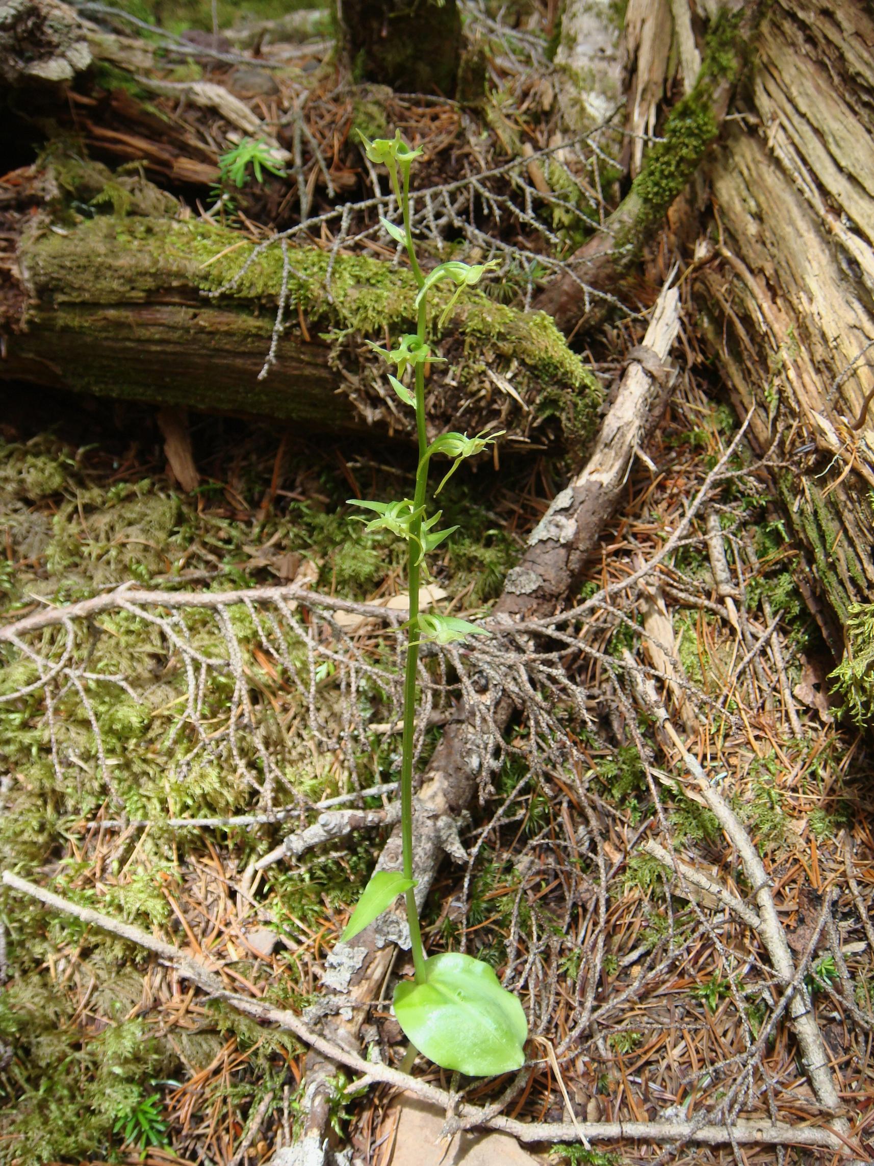 Found in far eastern Russia, Shaanxi, Shandong, Jiangsu, Anhui, Zhejiang, Jiangxi, Fujian, Henan, Hubei, Hunan, Guangdong, Guanxi, Sichuan, Guizhou, and Yunnan China, Korea, Japan and Taiwan in montane to subalpine forests on exposed northern facing slopes at elevations of 800 meters and above as a small to medium sized, cold growing terrestrial with erect, slender stems carrying 1 to rarely 2, lower, large, elliptic, oblong, acute, amplexicaul and clasping below leaves and 2 to 4, smaller, bract-like, lanceolate leaves above that blooms in the spring on an erect, 2.4 to 8.8" [6 to 22 cm] long, 7 to 20 flowered, racemose inflorescence with lanceolate bracts carrying fragrant flowers