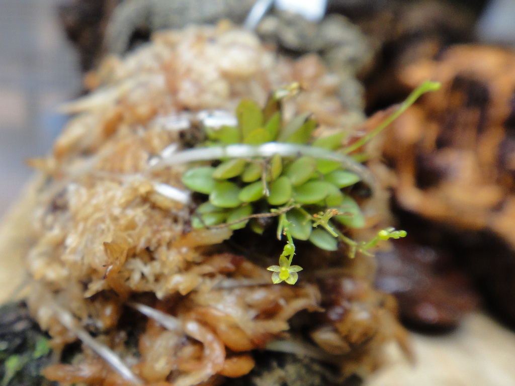 Found in Chiapas, Guerrero and Oaxaca states of Mexico, Belize, Guatemala, El Salvador, Honduras, Costa rica, Panama and Colombia along rivers at elevations around 100 meters as a super mini-miniature sized, hot growing epiphyte [1 cm total] with short, erect ramicauls enveloped basally by 2 to 3 sheaths and carrying a single, apical, elliptic, gradually narrrowing below into the conduplicate base leaf that blooms in the late summer and winter on a .4" [1 cm] long including the .32 to .6" [8 to 15 mm] long peduncle, successively, few flowering inflorescnece.