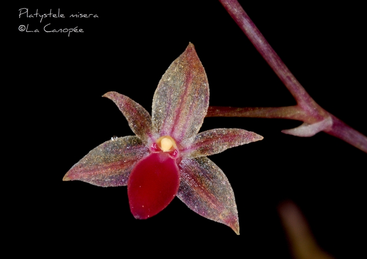 References W3 Tropicos, Kew Monocot list , IPNI ; Orquideologia Vol 16 No 1 1983Icones Pleurothallidinarum Vol VII Systematics of Platystele Luer 1990 drawing fide; Native Ecuadorian Orchids Vol 4 Dodson 2003 drawing fide; AOS Bulletin Vol 88 #10 2019 photo fide;