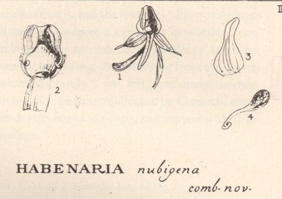 References W3 Tropicos, Kew Monocot list , IPNI ; Studies in the Family Orchidaceae Fascile 4 Ames 1910 as Habenaria nubigena drawing fide;