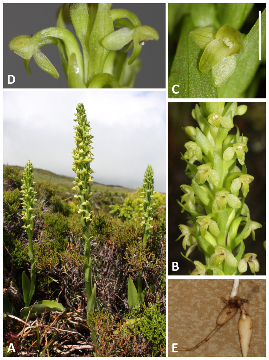 Comparrison of the three Azorean species - All specimens were collected in 1838 by Karl Hochstetter and are currently held at the University of Tübingen. (A, B) P. pollostantha. (C, D) P. micrantha. (E, F) P. azorica. Compare (C) and (E) with the original line drawings shown as Fig. 27. Scale bar for (B, C, E) = 10 mm. Images: R Bateman Photos by © R M Bateman and The PeerJ Website
