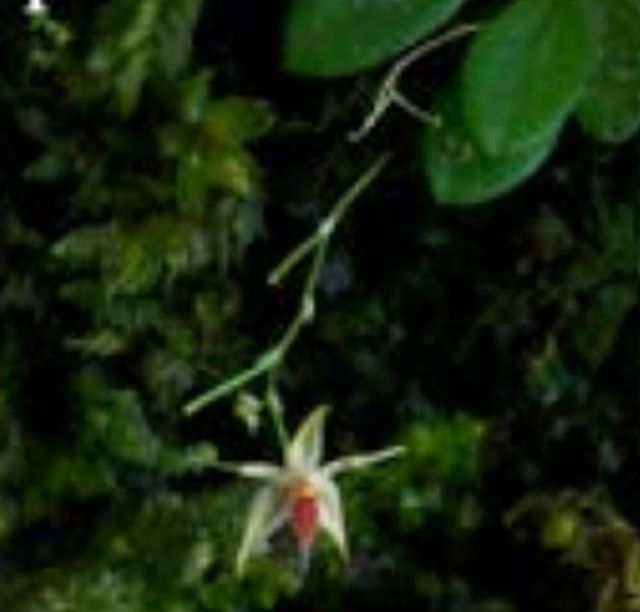 Found in Cartago province of Costa Rica in wet premontane forests at elevations of 300 to 600 meters as a mini-miniature sized, hot to warm growing, caespitose epiphyte with erect slender ramicauls enveloped by tubular, imbricating, slightly compressed, brownish and papery with age, membraneous sheaths and carrying a single, apical, erect, elliptic, conduplicate, subacute, emarginate, abaxially keeled, shortly apiculate, , narrowing below into the conduplicate, petiolate base leaf that blooms in the winter, spring and summer on a racemose, distichous, peduncle .24 to .32" [6 to 8 mm] long, .48 to .52" [1.2 to 1.3 cm] long ovarall, successively single, several flowered inflorescence with acute, conduplicate, shorter than the pedicel floral bracts.
