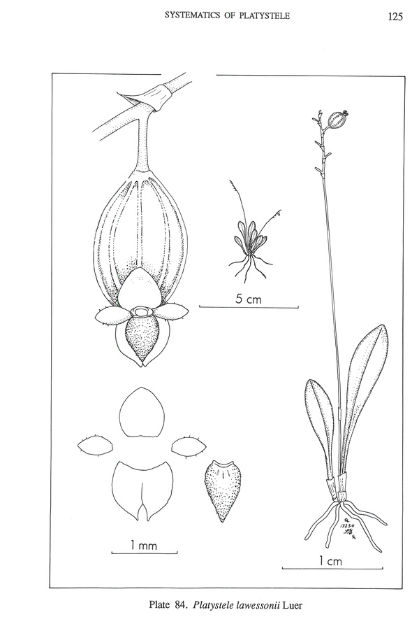 Platystele lawessonii Luer 1994 Drawing by Carl Luer and The Swiss Orchid Foundation at the Jany Renz Herbaria Website
