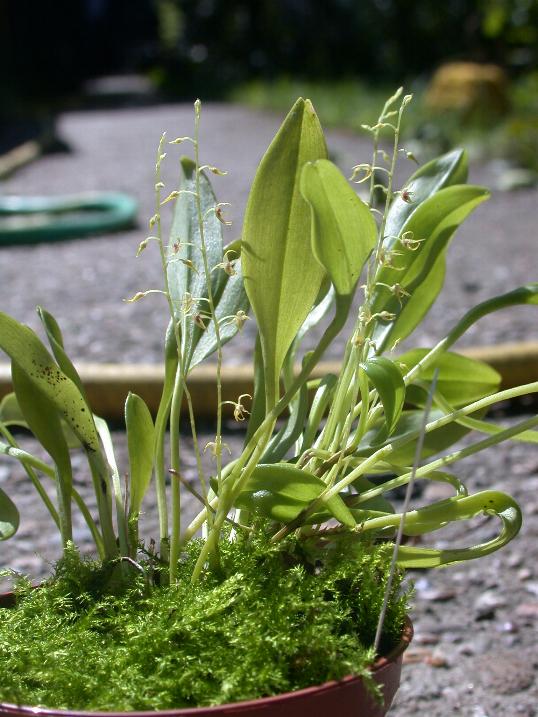 Found in Colombia, Ecuador, Peru and Bolivia at elevations of 1000 to 2400 meters as a miniature to small sized, cool to coldgrowing, miniature epiphyte with ereect, slender, ramicauls enveloped basally by 2 to 3 thin, ribbed, imbricating sheaths and carrying a single, apical, erect, coriaceous, elliptical-obovate, subacute leaf that is narrowly cuneate below into the petiole and blooms on a strict, subdense, distichous, simultaneously many flowered, 3.2" to 6" [8 to 15 cm] long including the erect, slender, 1.2 to 2" [3 to 5 cm] long peduncle, racemose inflorescence arising laterally from the ramicaul and having loose, oblique floral bracts.