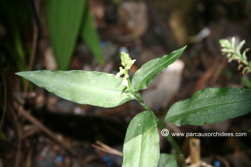 Found in Florida, Louisiana, Mexico, Belize, Giatemala, El Salvador, Honduras, Nicaragua, Costa Rica, Bahamas, Cuba, Dominican Republic, Haiti, Leeward, Trinidad & Tobago, the Windwards, Venezuela and Peru in cloud forest in deep shade at elevations of 400 to 1650 meters as a miniature sized, hot to cool growing, terrestrial, rhizomatous plant with erect, green stems enveloped by with 3 to 5 spirally arranged, elliptic-ovate to lanceolate, basally clasping leaves with a distinct petiole that blooms at any time of the year on an erect, terminal, to 4" [to 10 cm] long, racemose, many, successively flowered inflorescence subtended by an attenuate bract.