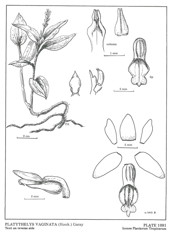 References W3 Tropicos, Kew Monocot list , IPNI ; Studies in the family Orchidaceae Vol VII Ames 1922 as Erythrodes vaginata; Icones Plantarum Tropicarum Plate 1081 Hamer 1982 as Erythrodes vaginata drawing fide; Harvard Pap. Bot. 5 #2: Carnevali etal. 2001 Manual De Plants De Costa Rica Vol III Hammel, Grayum, Herrera and Zamora 2003 as Erythrodes vaginata drawing good; Orchid Genera and Species in Guatemala Archila, Szlachchetko, Chiron, Lipinska, Mystkowska and Bertolini 2018