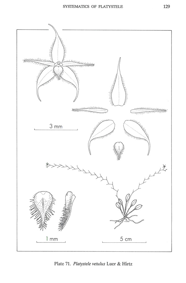 References W3 Tropicos, Kew Monocot list , IPNI ; Icones Pleurothallidinarum Vol VII Systematics of Platystele Luer 1990 drawing fide; Native Ecuadorian Orchids Vol 4 Dodson 2003 photo fide