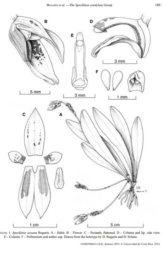 References W3 Tropicos, Kew Monocot list , IPNI ; Lankesteriana 12[3]: 185- 206 Bogarin 2014 as Specklinia acoana photo/drawing fide