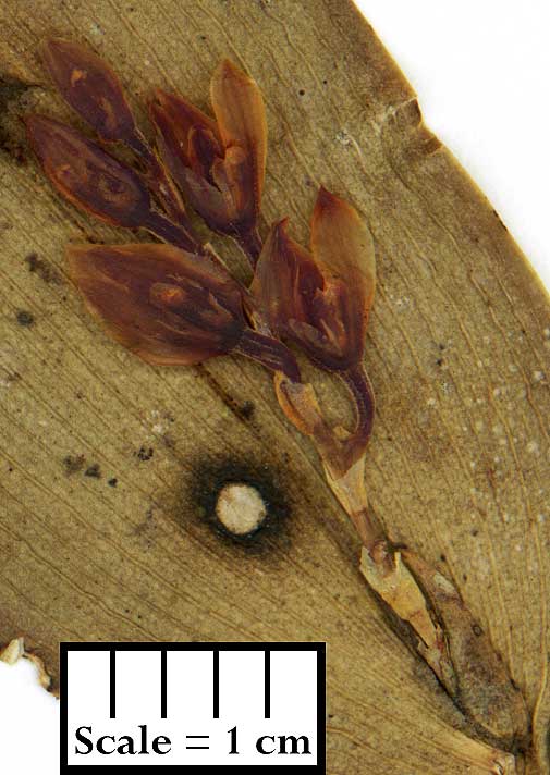 Found in Pataza Ecuador at elevations of 1000 to 1160 meters as a small sized, warm growing, caespitose epiphyte with sharply winged, laterally compressed, sulcate from the middle, erect, ramicauls enveloped by 2 to 3, thin, tubular sheaths and carrying a single, apical, erect, coriaceous, narrowly ovate, acute, acuminate, decurrent onto the ramicaul, cuneate below in to the sessile base leaf that blooms in the spring and fall on fascile , .2 to .24" [5 to 6 mm] long, successive flowered inflorescence arising at the apex of the ramicaul through a spathe