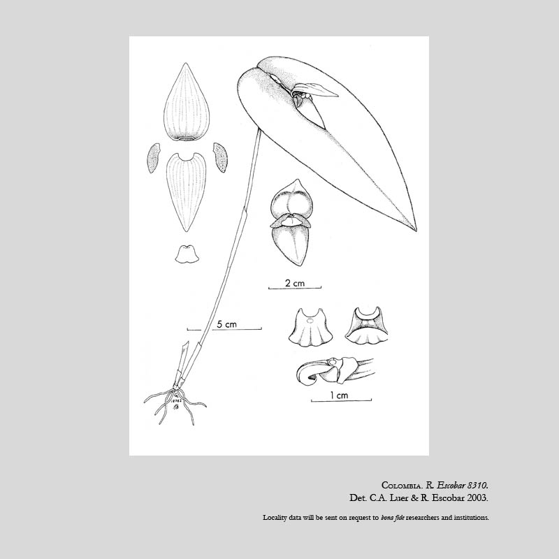 Pleurothallis aguirrei Luer & R.Escobar 2003 SUBGENUS Pleurothallis SECTION Macrophyllae-Fasciculatae Lindl 1859 TYPE Drawing by Carl Luer © Epidendra.