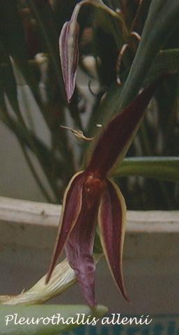 References W3 Tropicos, Kew Monocot list , IPNI ; The Orchids of Panama L.O. Williams & P Allen 1946 drawing fide; Icones Pleurothallidinarum Systematics of Pleurothallis Vol 3 Luer 1986; Icones Pleurothallidinarum Vol XVII Systematics of Pleurothallis Section Abortivae, Truncatae, Subsection Acroniae, Subgenera Dracontia and Uncifera Luer 1998 drawing fide; Icones Pleurothallidinarum Vol XXVII Luer 2005 as Acronia allenii; Mille et Une Mini Orchideees Roguenant 2009 photo fide;