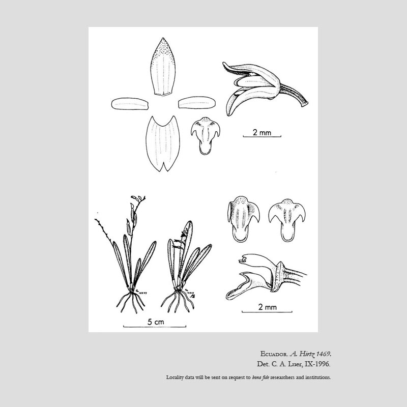 Pleurothallis ancistra Luer & Hirtz 1996 SUBGENUS UnciferaDrawing by © Hirtz & Carl Luer The Epidendra Website
