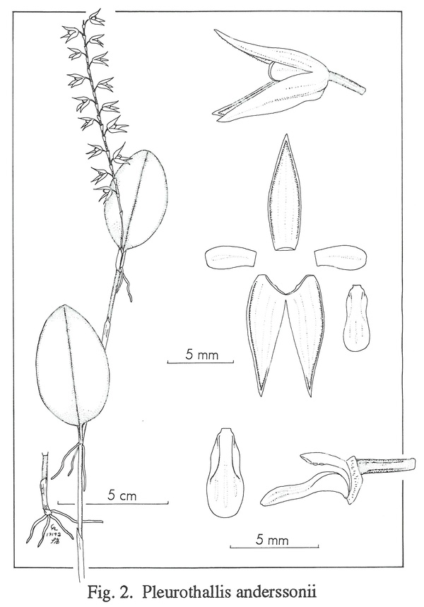 References W3 Tropicos, Kew Monocot list , IPNI ; Icones Pleurothallidinarum Vol XVIII Systematics of Pleurothallis subsection Antenniferae, Longiracemosae, Macrophyllae-Racemosae and Subgenera Pseudsostelis and Acuminata Luer 1999 drawing fide; Icones Pleurothallidinarum Vol XXVI Luer 2004 as Specklinia andersonii