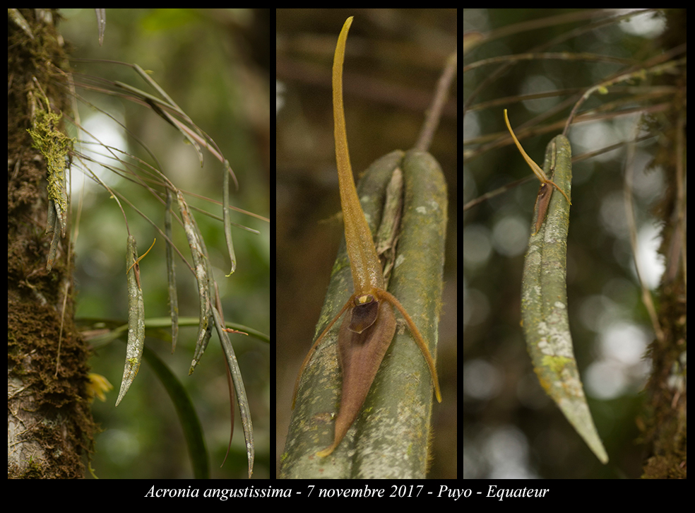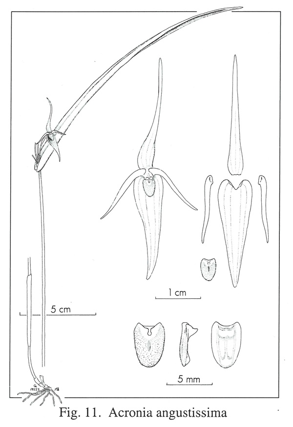 References W3 Tropicos, Kew Monocot list , IPNI ; *Icones Pleurothallidinarum Vol XXVII Luer 2005 as Acronia angustissima drawing fide; AOS Bulletin Vol 76 No 9 2007 photo fide;