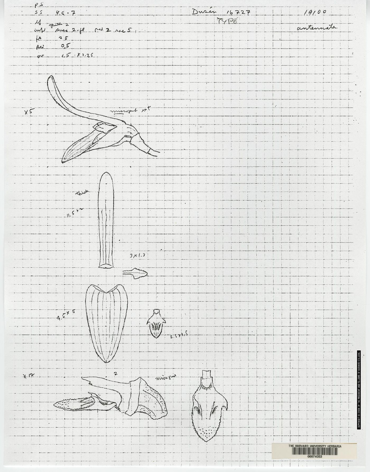 Pleurothallis antennata Garay 1953 SUBGENUS Acianthera SECTION Brachystachyae Lindley 1859 TYPE Drawing by © Garay and Herbario Virtual Austral Americano Webpage
