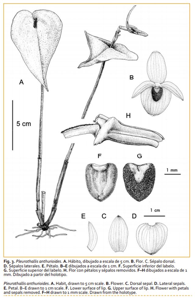 Pleurothallis anthurioides A.Doucette 2016SUBGENUS Pleurothallis SECTION Macrophyllae-Fasciclatae Lindl. 1859
