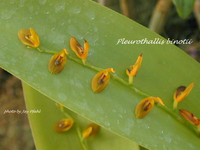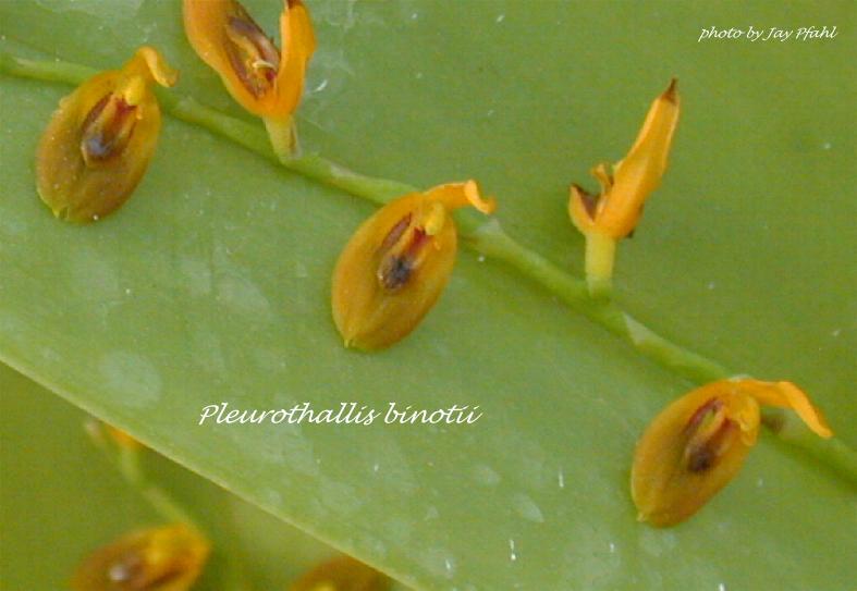 References W3 Tropicos, Kew Monocot list , IPNI ; Orchidaceae Brasilensis Band 1 Pabst & Dungs 1975 drawing hmm; Systematics of Pleurothallis Vol 2 Luer 1986; Lindleyana Vol 16 No 4 2001 as Acianthera binotii; The Organ Mountain Range Its History and Its Orchids Miller, Warren, Miller and Seehawer 2008 drawing fide; AOS Bulletin Vol 86 #12 2017 as Acianthera binotii photo fide;