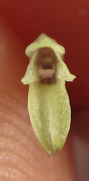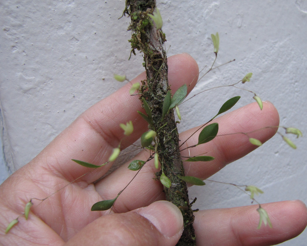 Found in Brazil in humid primary cloud forests at elevations of 900 to 1500 meters as a mini-miniature sized, warm to cool growing epiphyte with erect ramicauls enveloped by 3 sheaths with the lowest being short and the apical being loose and carrying a single, apical, erect, light green, linear, conduplicate, attenuate below into the pseudopetiolate base leaf that blooms in the mid spring through mid fall on a 1.6 to 2.4" long, successivley 3 to 4, single flowered inflorescence