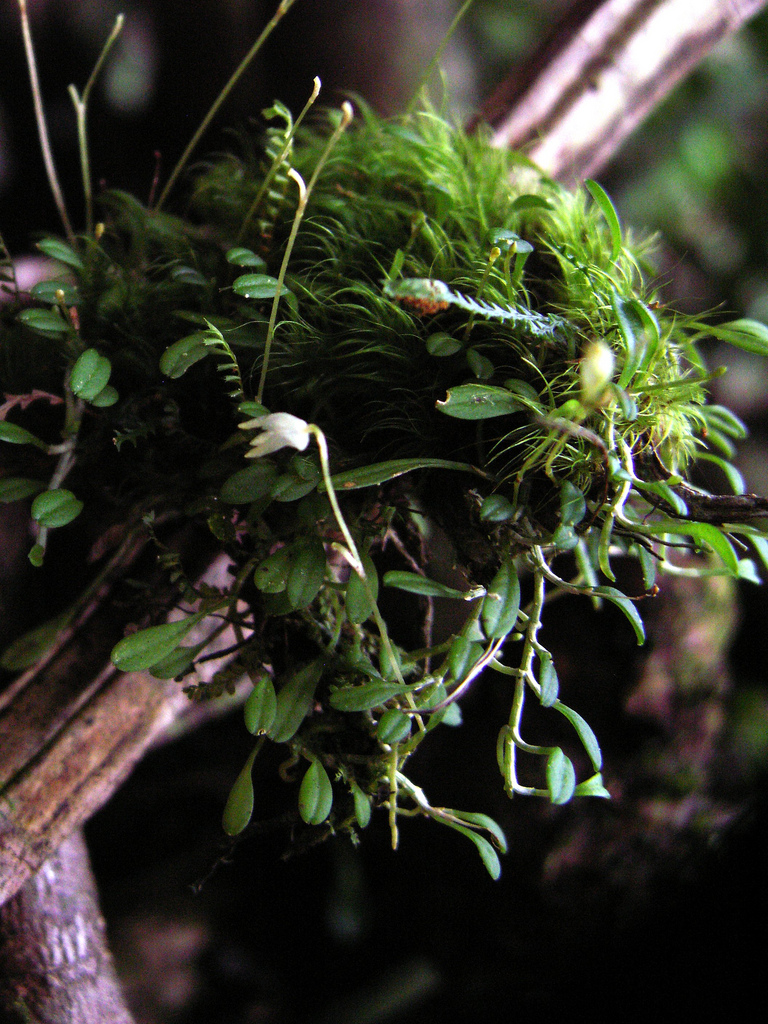 Found in Nicaragua, Costa Rica, Panama, Colombia and Ecuador in wet montane cloud forests at elevations of 300 to 1300 meters as a miniature sized, hot to cool growing epiphyte with a creeping rhizome, giving rise to a short ramicaul enveloped basally by 2 to 3 close, tubular sheaths and carrying a single, apical, narrowly elliptic leaf that gradually narrows below into an indistinct petiole and blooms in the fall and early winter on a slender, 2 to 3 flowered inflorescence arising from low on the ramicaul.