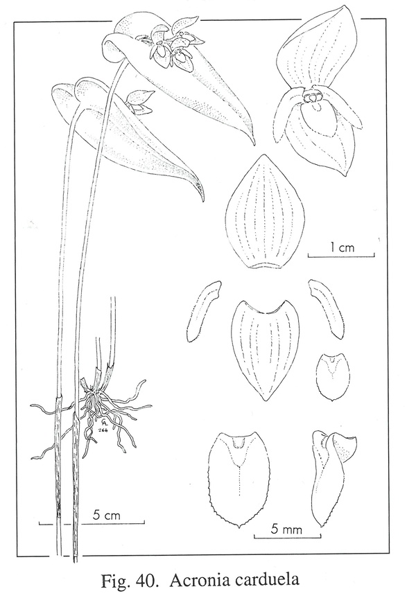 References W3 Tropicos, Kew Monocot list , IPNI ; *Icones Pleurothallidinarum Vol XXVII Luer 2005 as Acronia carduela drawing fide; AOS Bulletin Vol 76 No 9 2007 as Acronia carduela photo fide;