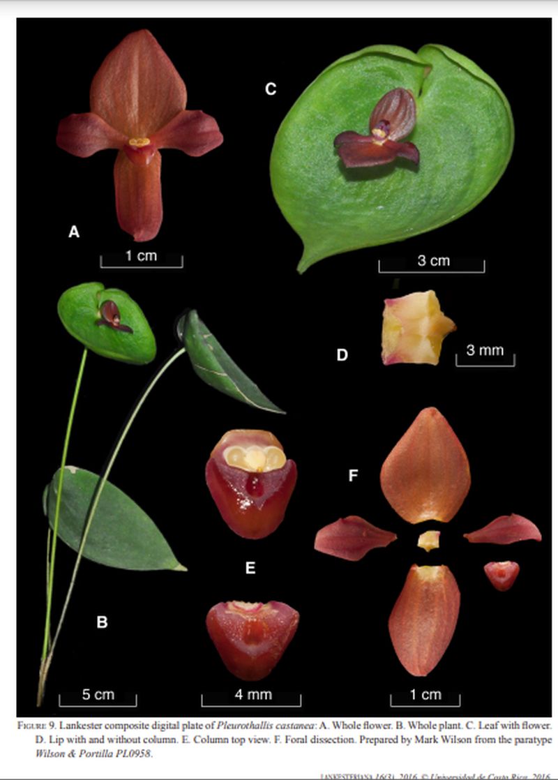 Pleurothallis castanea Mark Wilson, G.Merino & J.D.Werner 2016 SUBGENUS Pleurothallis SECTION Macrophyllae-Fasciculatae Lindl 1859