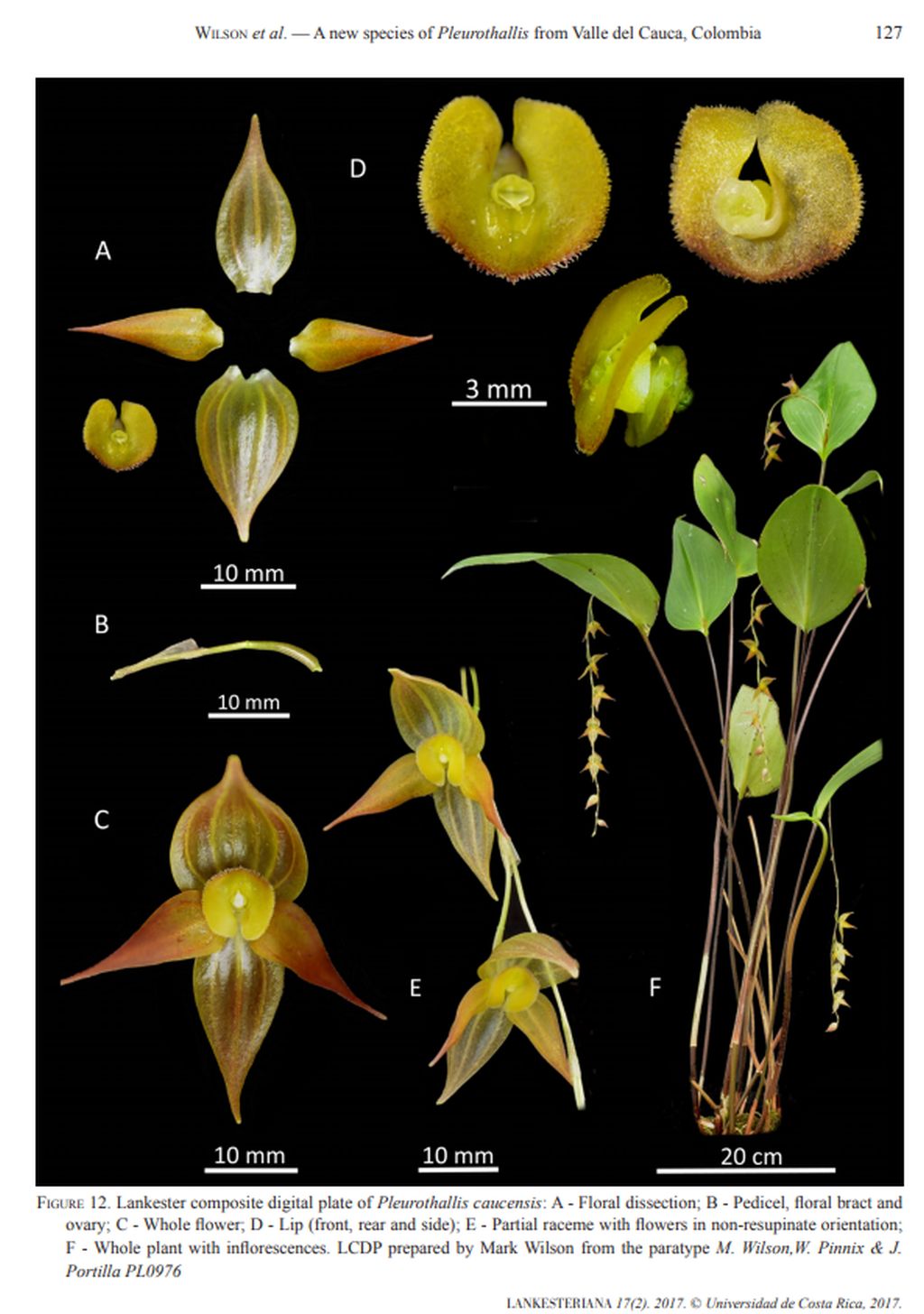 Pleurothallis caucensis Mark Wilson 2017 SUBGENUS Pleurothallis SECTION Pleurothallis SUBSECTION Macrophyllae-Racemosae [Lindl] Luer 1986