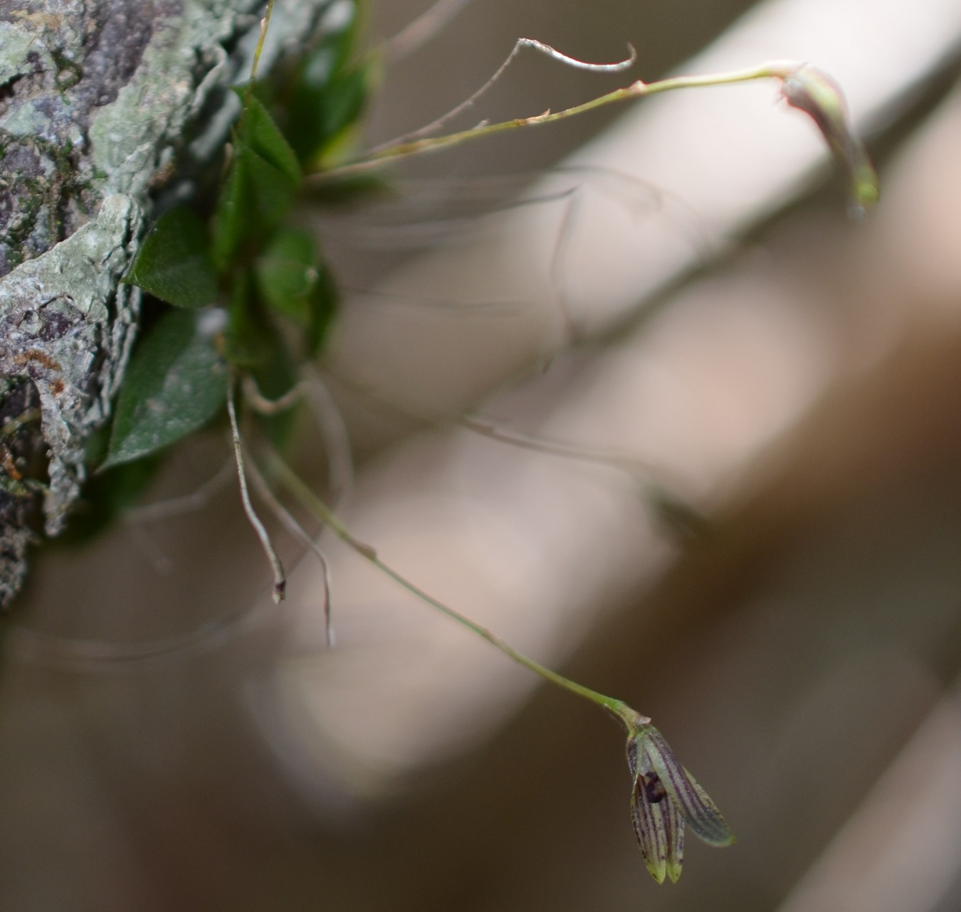 Found in Cuba, Puerto Rico and the Cayman Islands in semideciduous forests at low elevations, generally in vegetation on limestone as a mini-miniature szied, hot growing lithophyte with erect ramicauls enveloped by 2 scarious sheaths and carrying a single, apical, erect, coriaceous, thickened, rigid, yellowish green and verrucose on the upper surface, green and rough beneath, ovate to broadly elliptic to suborbicular, acute, acuminate to apiculate, crenulate to erose margins, cuneate below into the channeled, petiolate base leaf that blooms in the spring on 2, terminal, ascending, .4 to 2" [1 to 2.5 cm] long, successsively 2 to 3 flowered inflorescence arising through a basal sheath