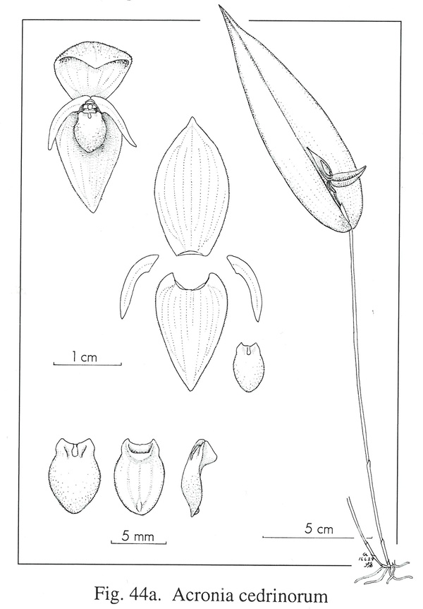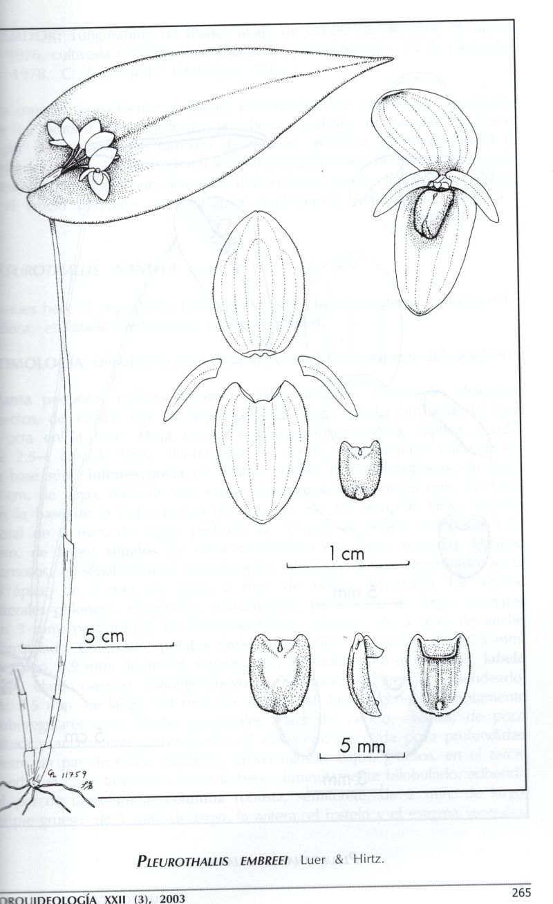 References W3 Tropicos, Kew Monocot list , IPNI ; Orquideologia Vol 22 #3 2003 as P embreei drawing fide; Icones Pleurothallidinarum XXVII Luer 2005 as Acronia cedrinorum drawing fide;