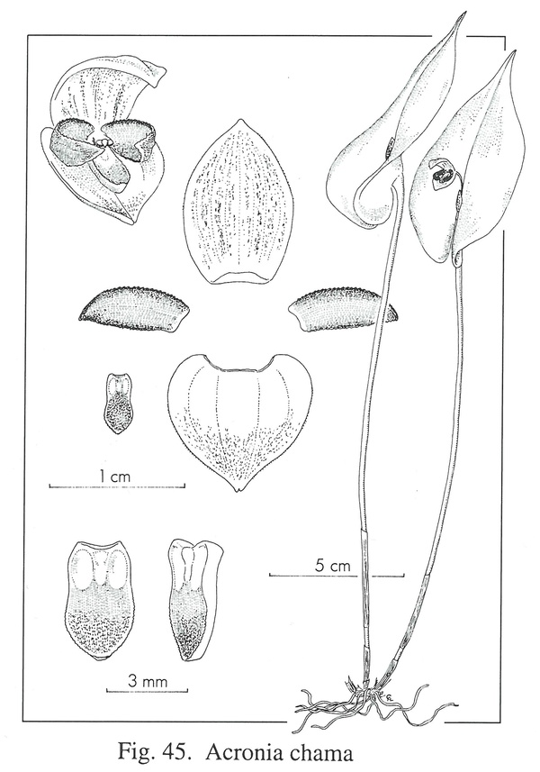 References W3 Tropicos, Kew Monocot list , IPNI ; Icones Pleurothallidinarum XXVII Luer 2005 as Acronia chama drawing fide;
