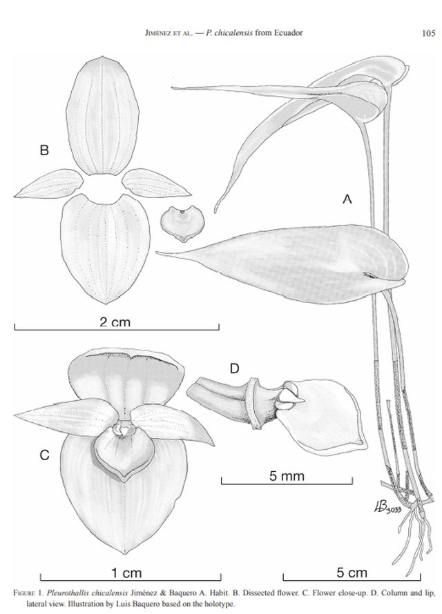 Pleurothallis chicalensis M.M.Jiménez & Baquero 2018 SUBGENUS Pleurothallis SECTION Macrophyllae-Fasciculatae Lindl 1859