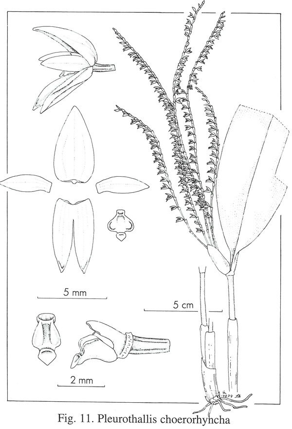 Pleurothallis choerorhyncha Luer 1996 SUBGENUS Crocodeilanthe [Rchb.f & Warsc.]Luer 1986Drawing by Carl Luer and The Swiss Orchid Foundation at the Jany Renz Herbaria Website